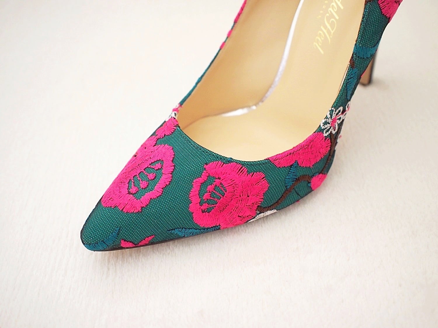 りんごの木をイメージした華やかなパンプスです。